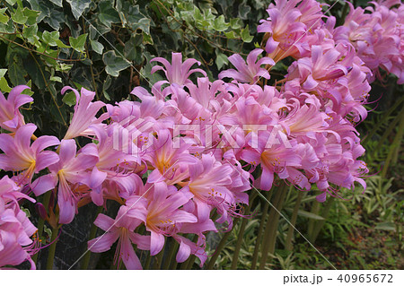 自然 植物 ナツズイセン、道ばたに群生し真夏に沢山の花を咲かせます