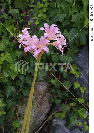 自然 植物 ナツズイセン、真夏。葉が枯れた後に長い花茎の先に数個の美しい花つけます