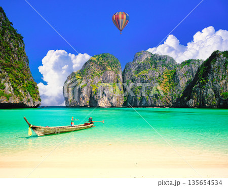マヤベイの綺麗な海と岩。タイの観光地。ピピ島。