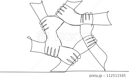 Continuous line of men giving high fives gesture hands to celebrate success. Business teamwork concept