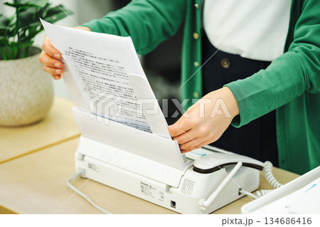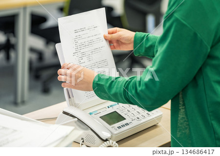 オフィスでFAXを送る女性