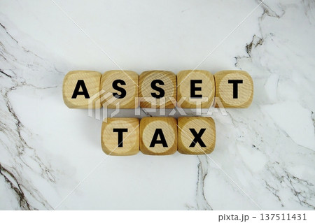 Asset Tax alphabet letters on marble background