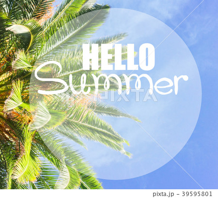 Tropical beach with coconut palm tree silhouettes at sunset, color toning applied.