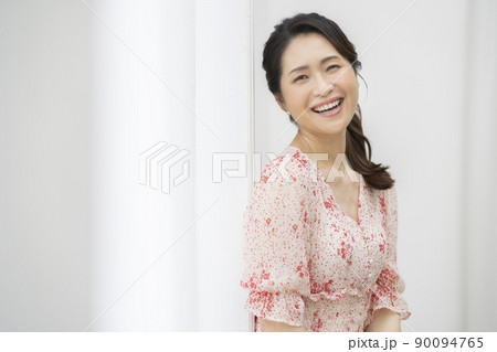 カメラ目線で笑顔のアラサーの女性 ポートレート