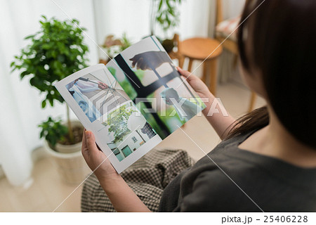 フォトブックを見る女性