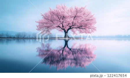 青空を彩るピンクの春の花々と柔らかな雲の風景