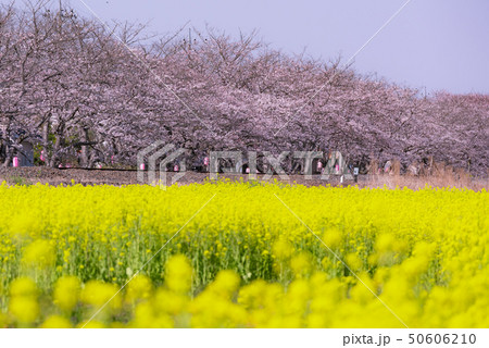 桜と菜の花、菜の花、春を感じる、春日和、栃木県、菜の花の名所、
