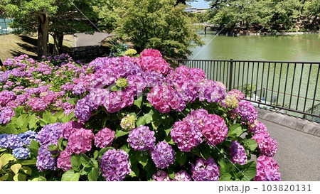 満開の西洋アジサイ〈東公園ひょうたん池ほとり/愛知県岡崎市〉