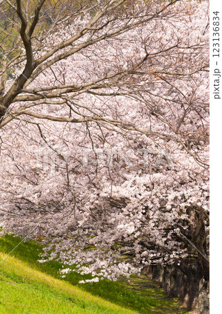 青空に浮かぶ満開の桜 青空背景の満開の桜