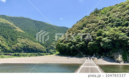 新緑と青空に彩られた四万十川と岩間沈下橋〈高知県〉