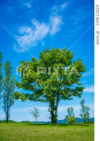 新潟県長岡市 国営越後丘陵公園のフォリーの丘の柏の大木