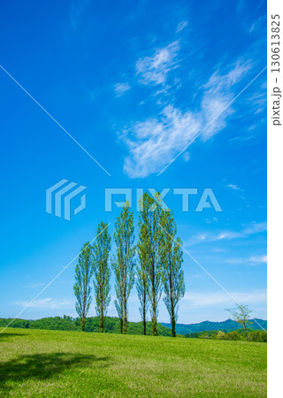 新潟県長岡市 国営越後丘陵公園のフォリーの丘のポプラ