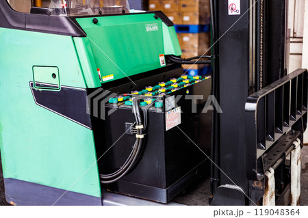 フォークリフトのフォーク部分を虫眼鏡で拡大して見る