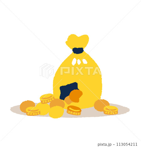 穴の空いたコイン袋のイラスト