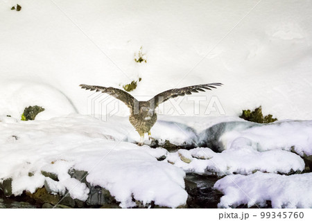 【シマフクロウ】小川に飛び込むシマフクロウ