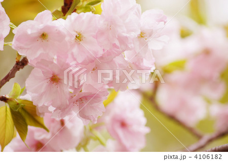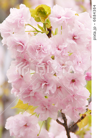 八重桜 ピンクの花アップ