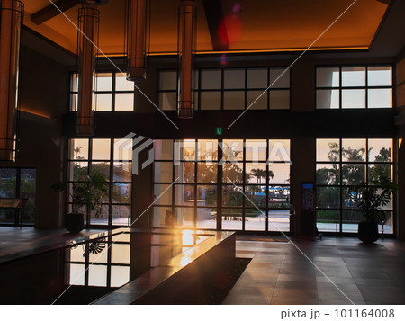 石垣島フサキビーチリゾート ホテル&ヴィラズのロビーから夕陽を臨む