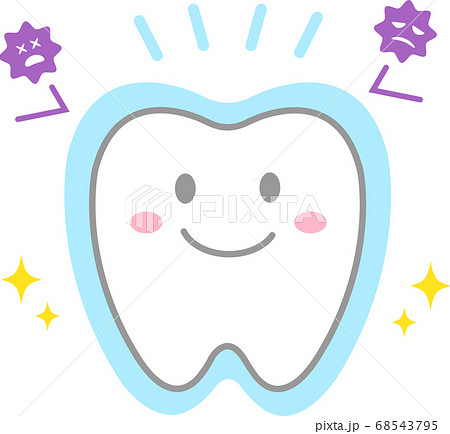 フッ素塗布をして菌をはねのける健康な歯のイラスト