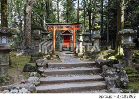 石燈籠と小さな赤い鳥居(春日大社/奈良県奈良市)