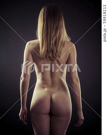 Her body will take your breath away. Studio shot of a beautiful woman posing naked against a gray background.