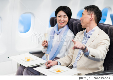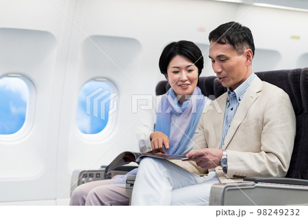 機内のミドルの夫婦