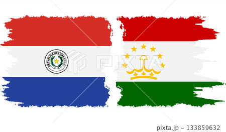 Tajikistan and Paraguay grunge flags connection vector