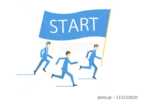 ゴールの旗を立てるスーツ・制服を着た人物の手のイラスト