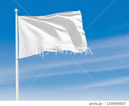 風にはためく白い旗。AI生成画像。