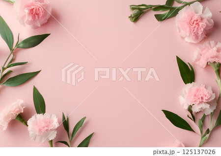 水彩で描いた母の日のカーネーションのコーナーフレーム