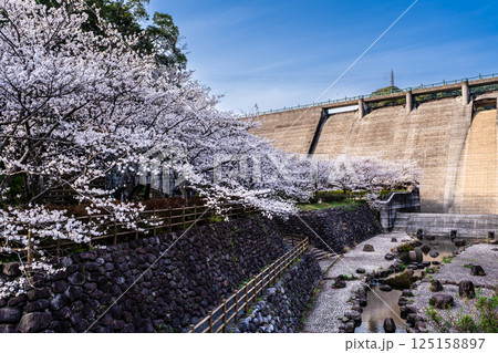 青空の下、ソメイヨシノの桜の花の満開の風景。