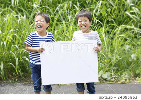 フリップを持つ男の子と女の子のイメージイラスト素材