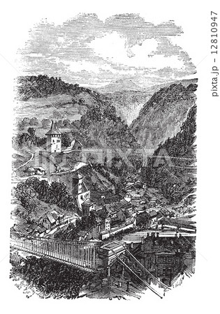 Fribourg or Freiburg im Uechtland in Switzerland vintage engrav