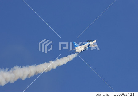 ブルーインパルスの展示飛行 快晴にスモークを曳くブルーインパルス