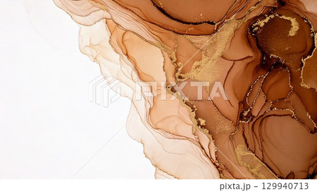高級感のある薄くて淡いアルコールインクアート ブラウン 余白 16:9サイズ AI生成素材