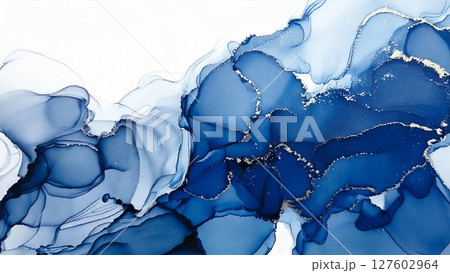 高級感のある薄くて淡いアルコールインクアート ブルー 余白 16:9サイズ AI生成素材