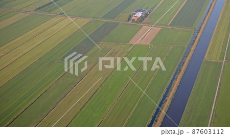 Agricultural landscape of Friesland, one of the northern provinces of the Netherlands - Friesland from above - Local farm