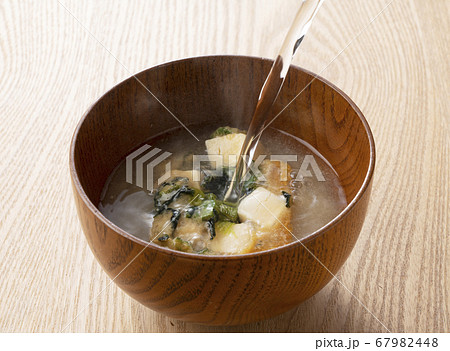 インスタント味噌汁 味噌汁のカップにお湯を注ぐ