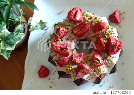 フリーズドライいちごをトッピングしたフワフワドーナツ
