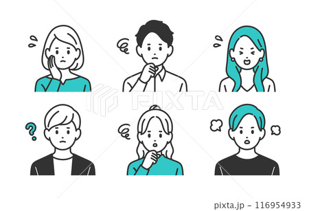ネガティブな若い男女の上半身セット【人物ベクターイラスト素材】