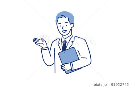 人差し指でポイントを指差すビジネスパーソンのイラスト 手描き スーツ 白衣