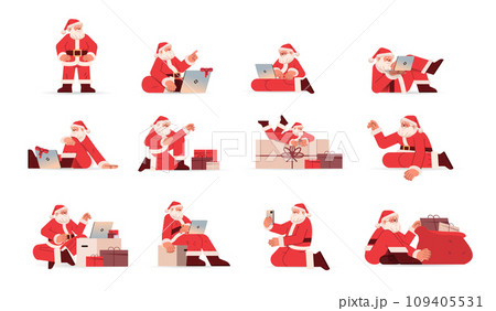 set santa claus in red costume in different poses happy new year merry christmas holidays celebration concept