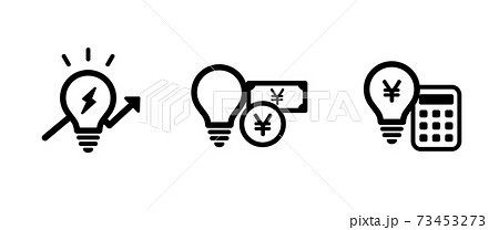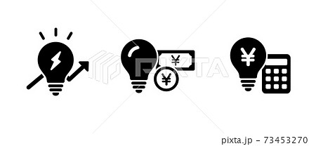 電気代のアイコンセット 電力 電気料金 電球 イラスト 光熱費 生活費 節電 ライト