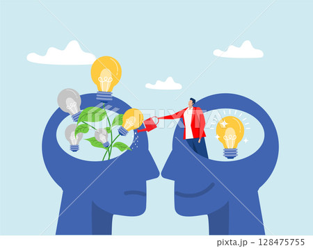 businessman watering ecology plant with a plant growing light bulbs in one, and a person watering the plant in the other. Creative and collaborative idea growth concept. Vector illustration