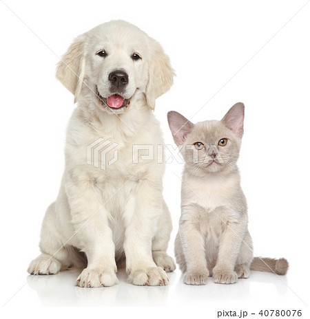 Cat and dog on white background