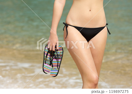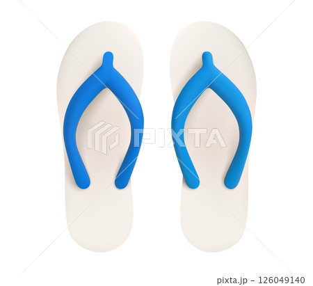 Realistic 3d flip flops. Stylish beach slippers. Cartoon beachcoast fashion shoes, summer vacation accessories. Rendering design vector element