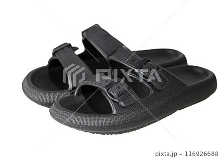 black sandals with a comfortable rubber sole, on a white background, isolate