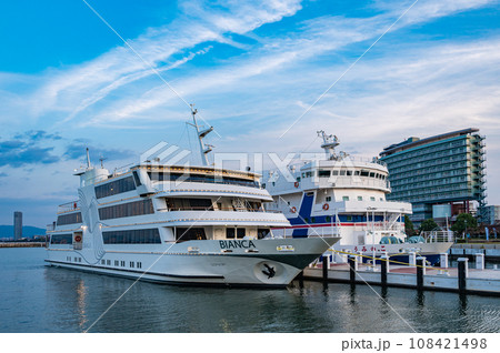 大津港に入港する学習船うみのこと停泊中のビアンカ