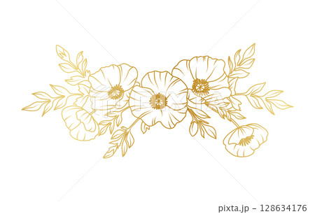 Golden poppy flowers line art isolated on white background. Luxury poppy floral design elements for invitation, wedding, wallpaper, print template, vector illustration