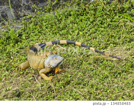 グアテマラの湖沿いのグリーンイグアナ