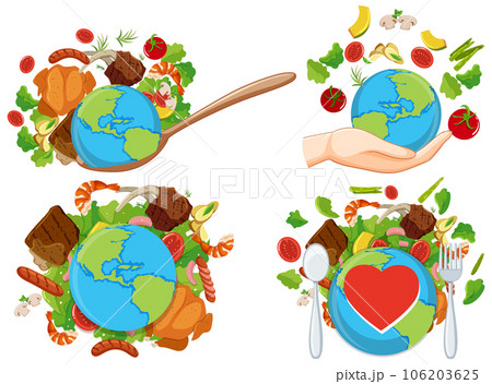 Set of world with healthy food